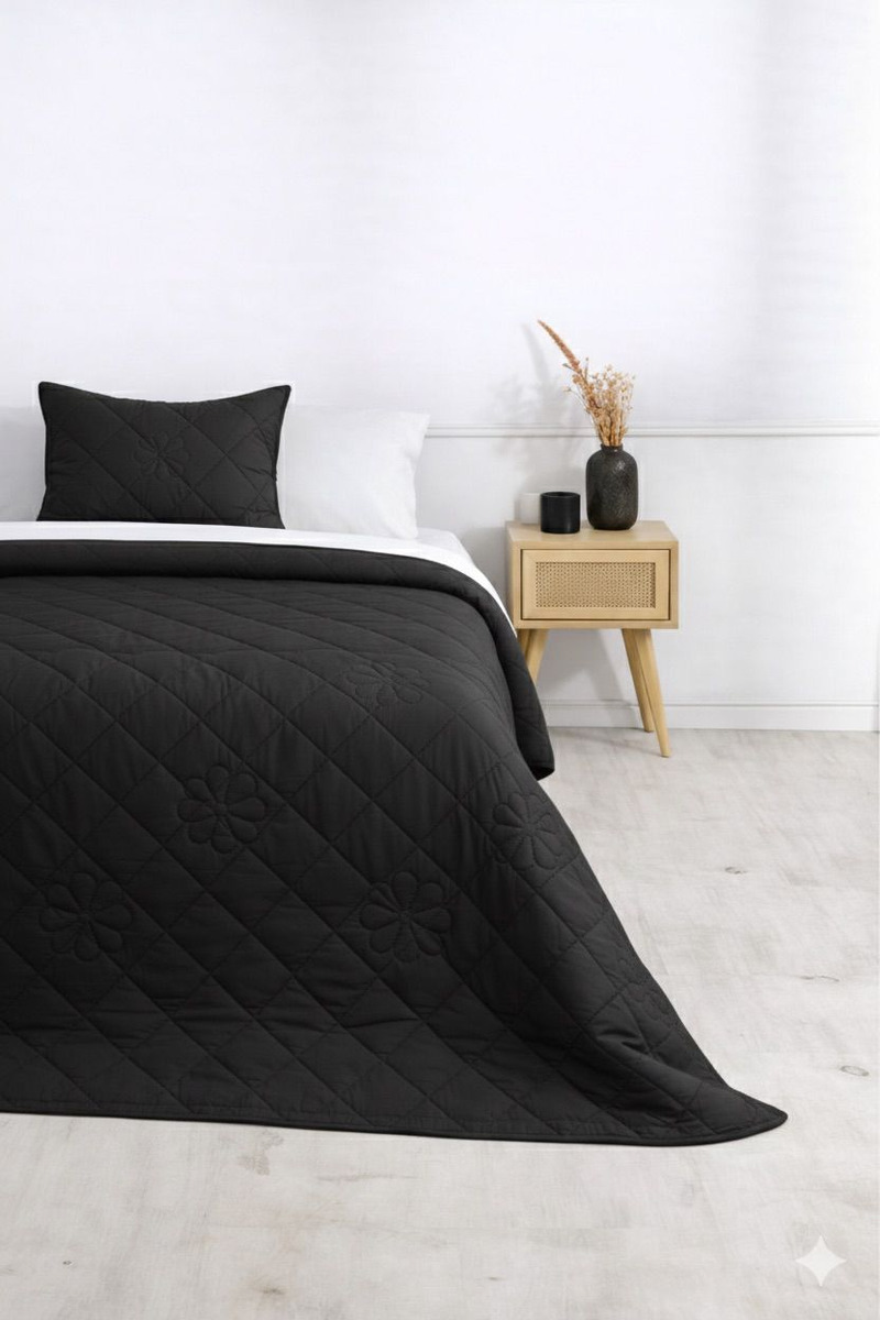 Este elegante quilt, con unas generosas medidas de 220 cm x 240 cm, es perfecto para camas de dos plazas.