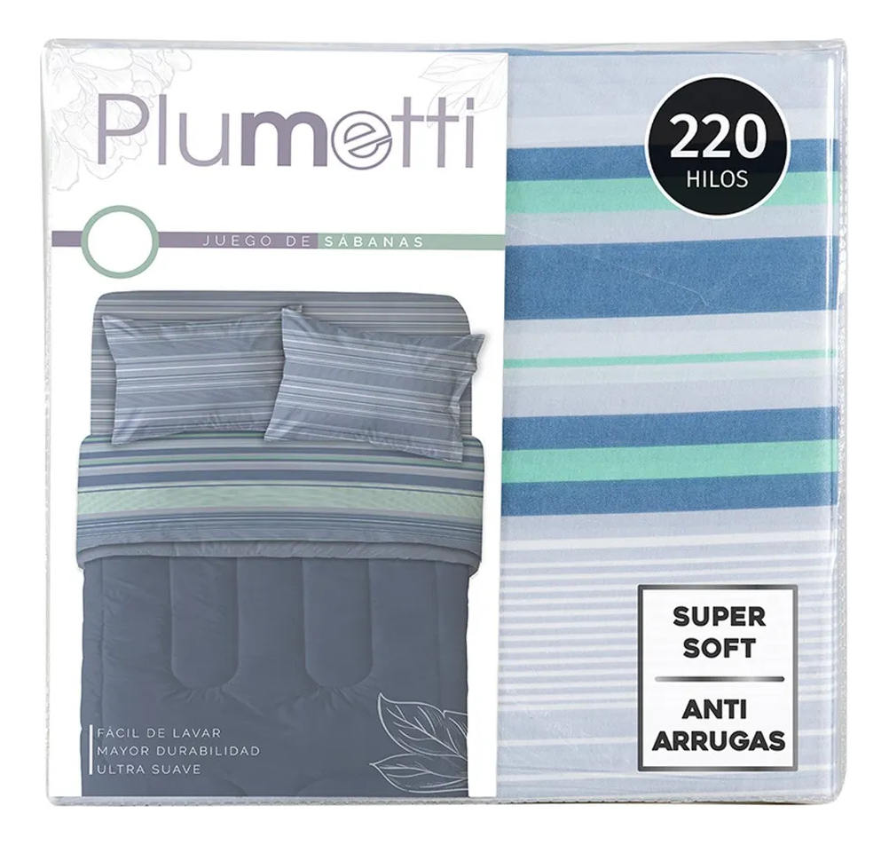 Este juego, con un atractivo estampado, se adapta perfectamente a colchones de 2 plazas, garantizando un ajuste ideal y un estilo moderno en tu dormitorio.
