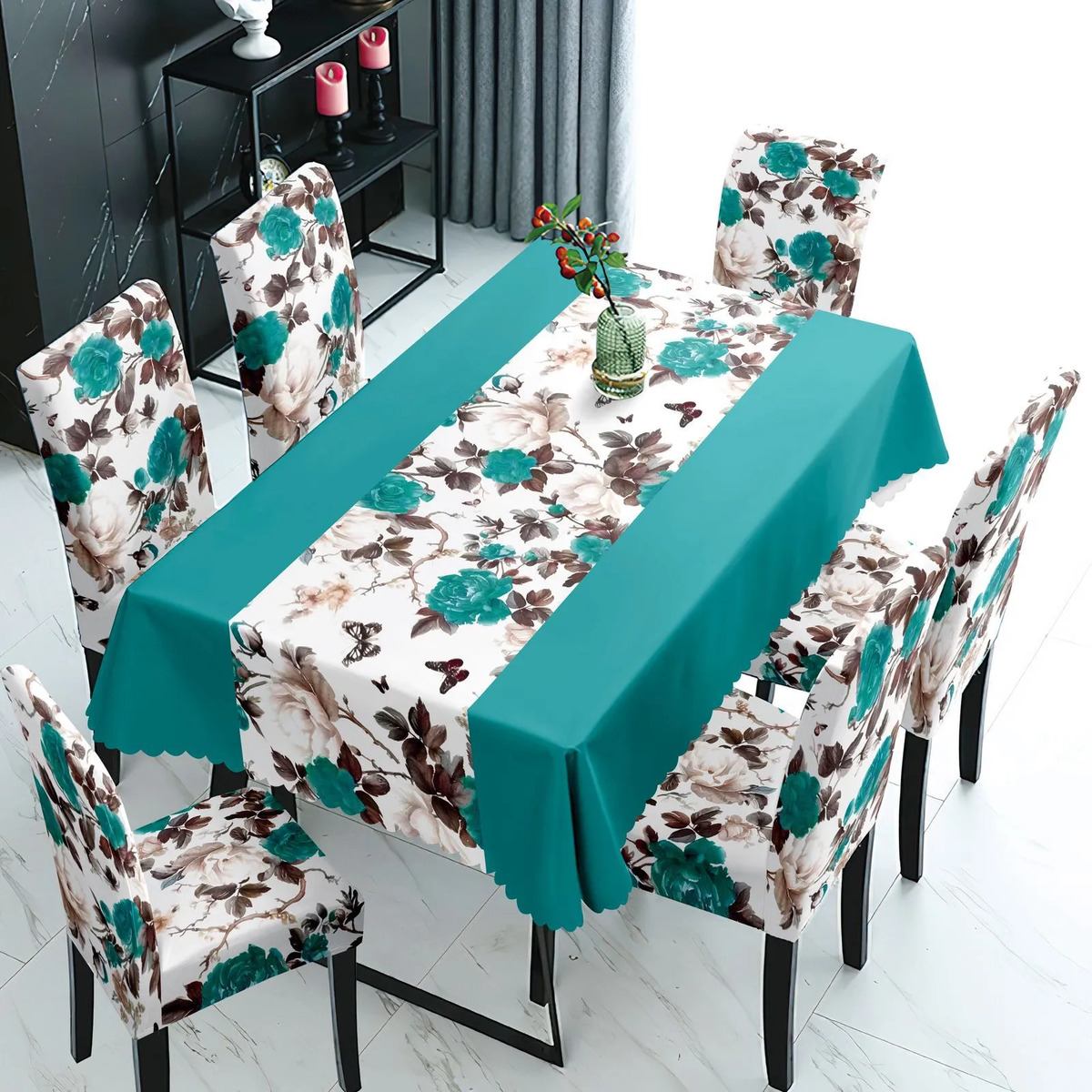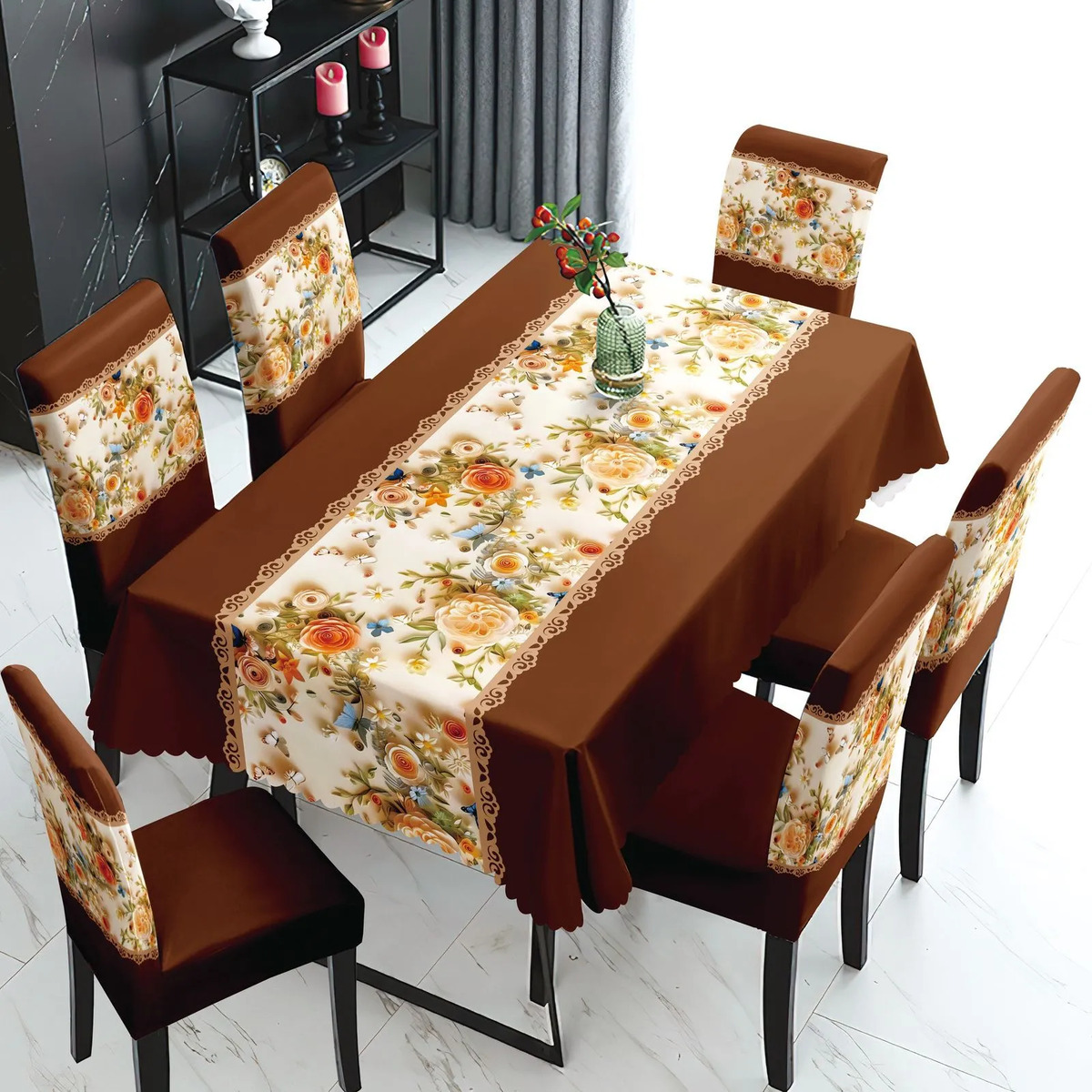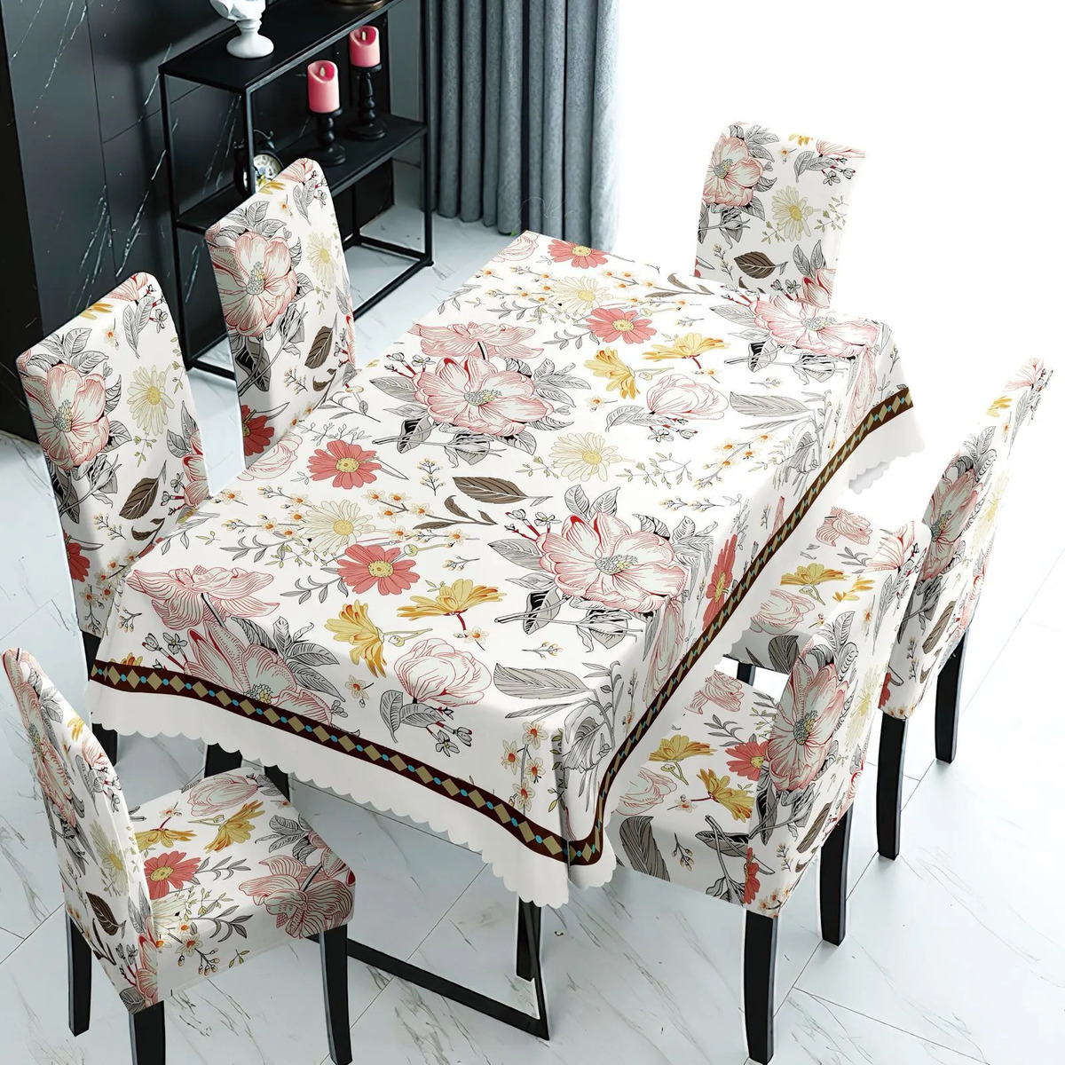Transforma tu espacio con el Mantel Con Fundas Cubre Sillas Cuadrille, un juego de 7 piezas que combina funcionalidad y estilo. Diseñado para adaptarse a sillas con respaldo de 45 cm y asiento de 40 cm, este conjunto es ideal para quienes buscan una solución práctica y estética para su hogar o evento.