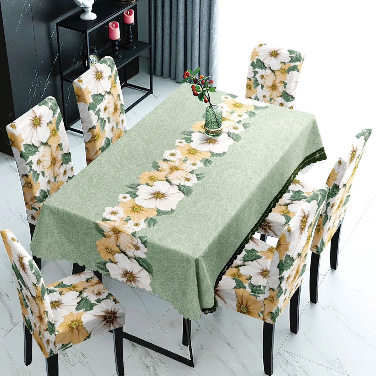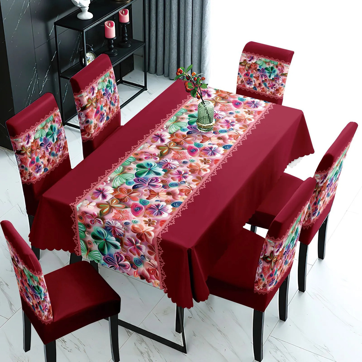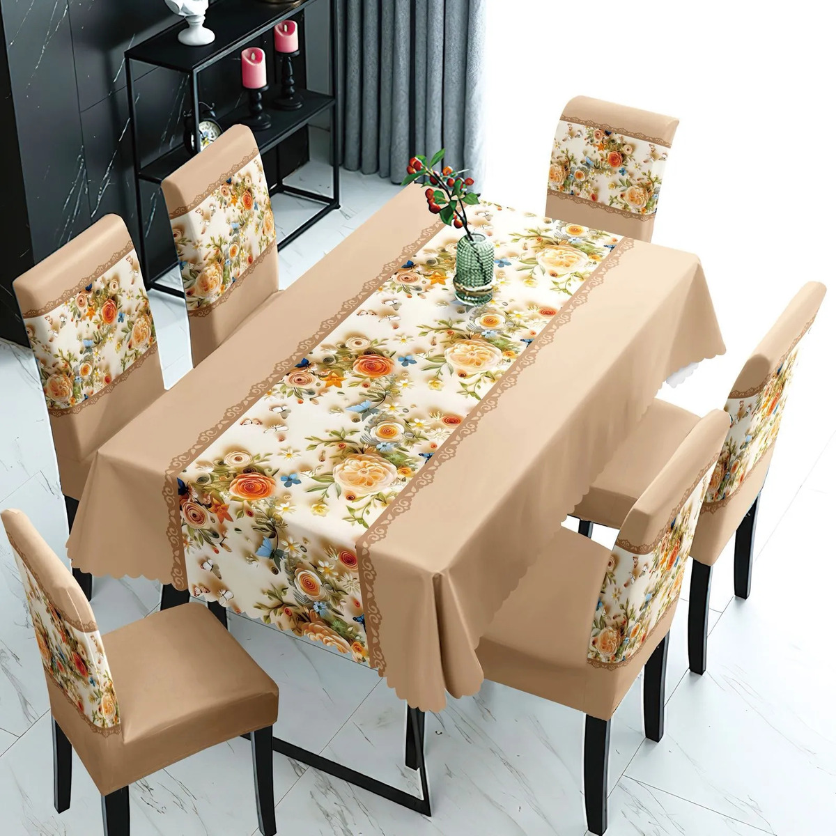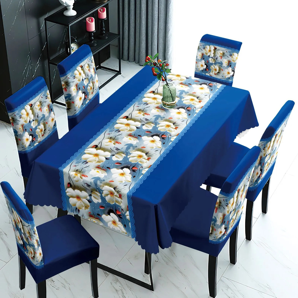 Transforma tu espacio con el Mantel Con Fundas Cubre Sillas Cuadrille, un juego de 7 piezas que combina funcionalidad y estilo. Diseñado para adaptarse a sillas con respaldo de 45 cm y asiento de 40 cm, este conjunto es ideal para quienes buscan una solución práctica y estética para su hogar o evento.