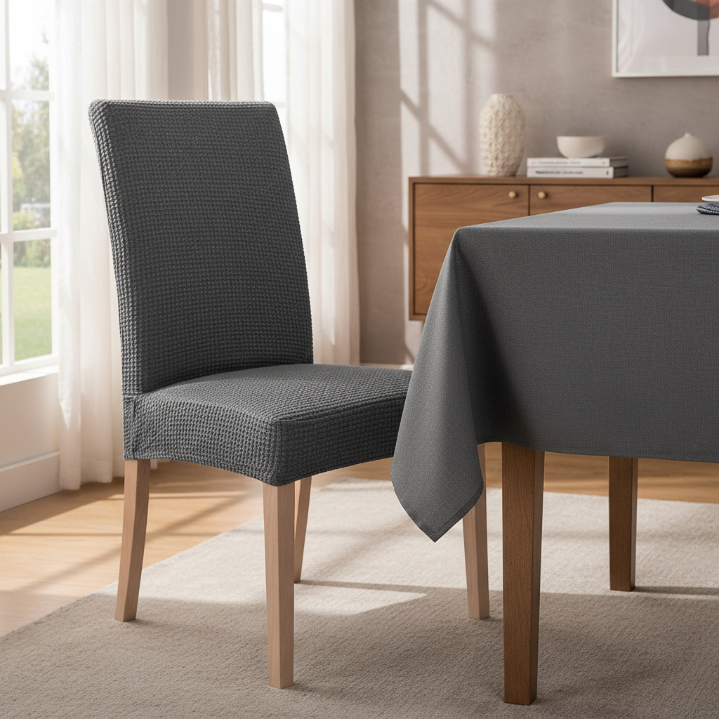 Fabricado con una composición de 95% poliéster y 5% elastano, ofrece una excelente elasticidad y durabilidad, asegurando un ajuste perfecto y una apariencia impecable. Su diseño aporta un toque clásico y elegante, ideal para cualquier tipo de decoración, desde la mesa más moderna hasta la más tradicional.