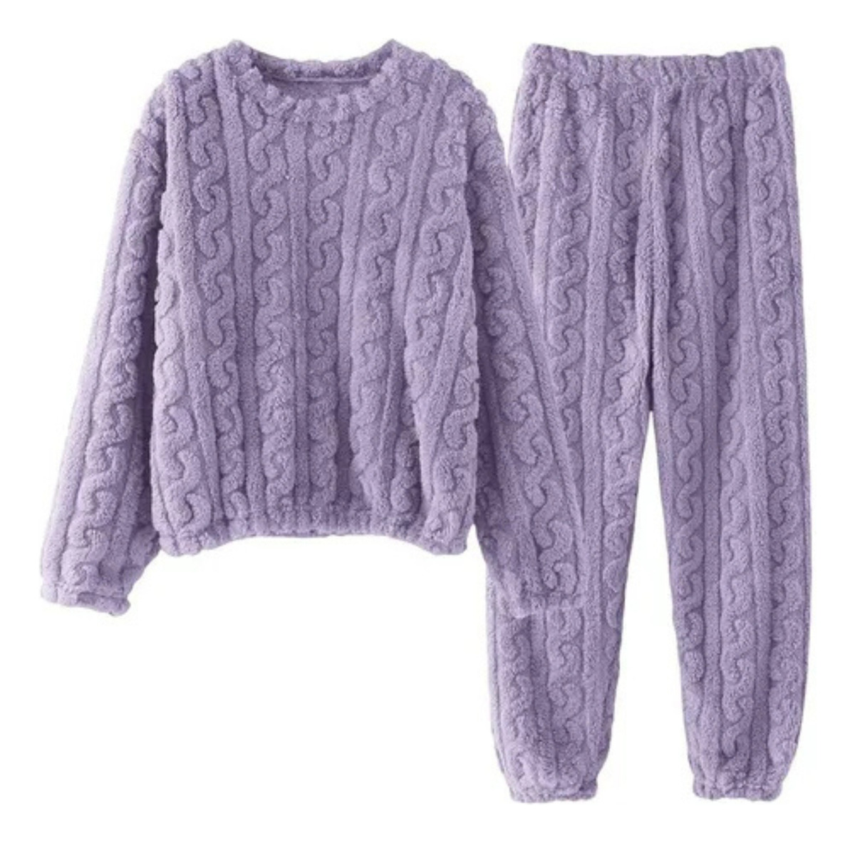 No dejes pasar la oportunidad de añadir este conjunto a tu guardarropa y experimentar la combinación perfecta de confort y estilo. Con el Pijama Conjunto Invierno Mujer Peludo Suave Trenzado, cada noche será una invitación a relajarte y disfrutar de tu tiempo personal.